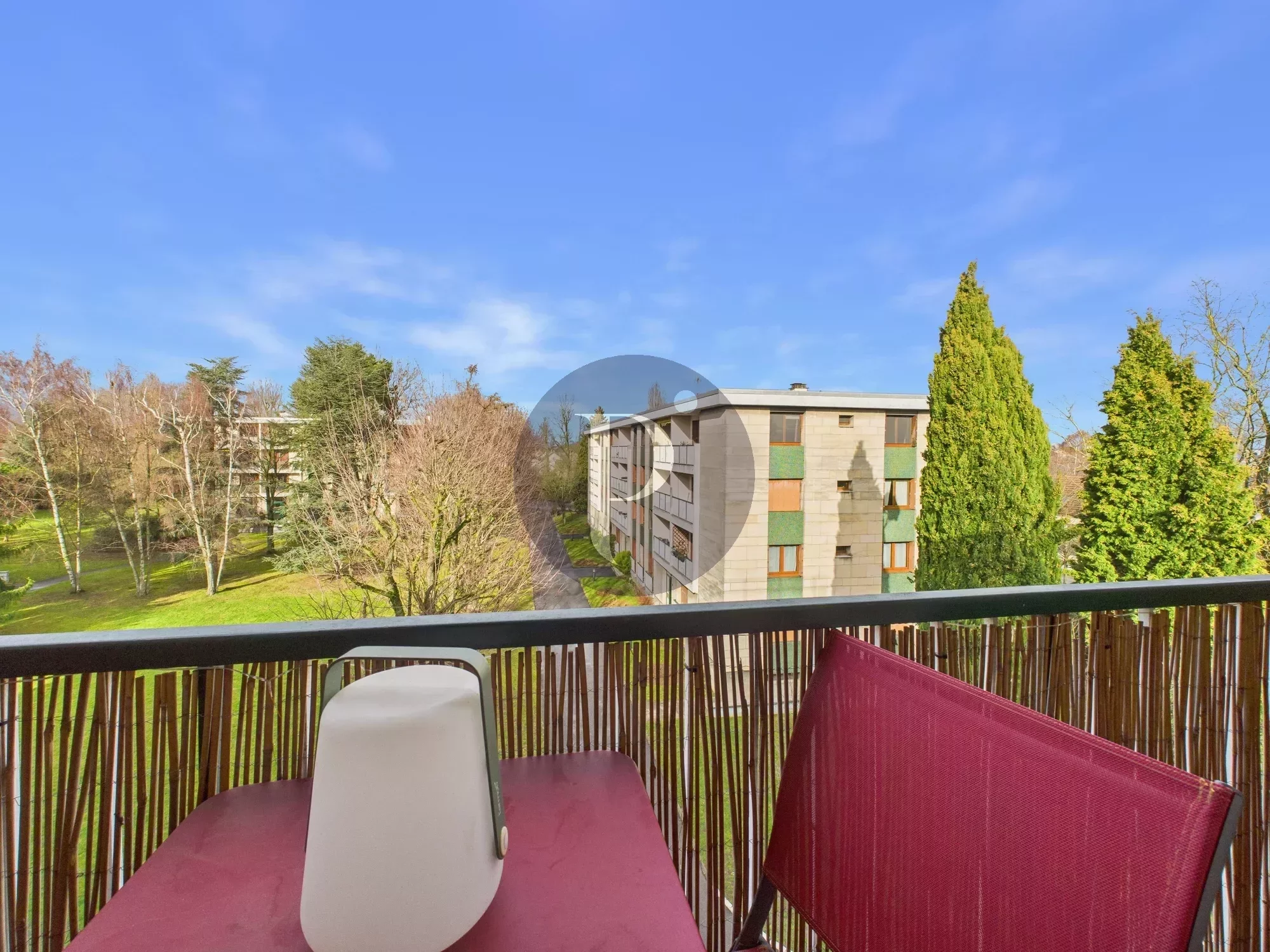 Il se compose d’une entrée avec placards, d’une cuisine entièrement équipée, ainsi que d’un séjour lumineux ouvrant sur un balcon, offrant une agréable vue sur un espace boisé.