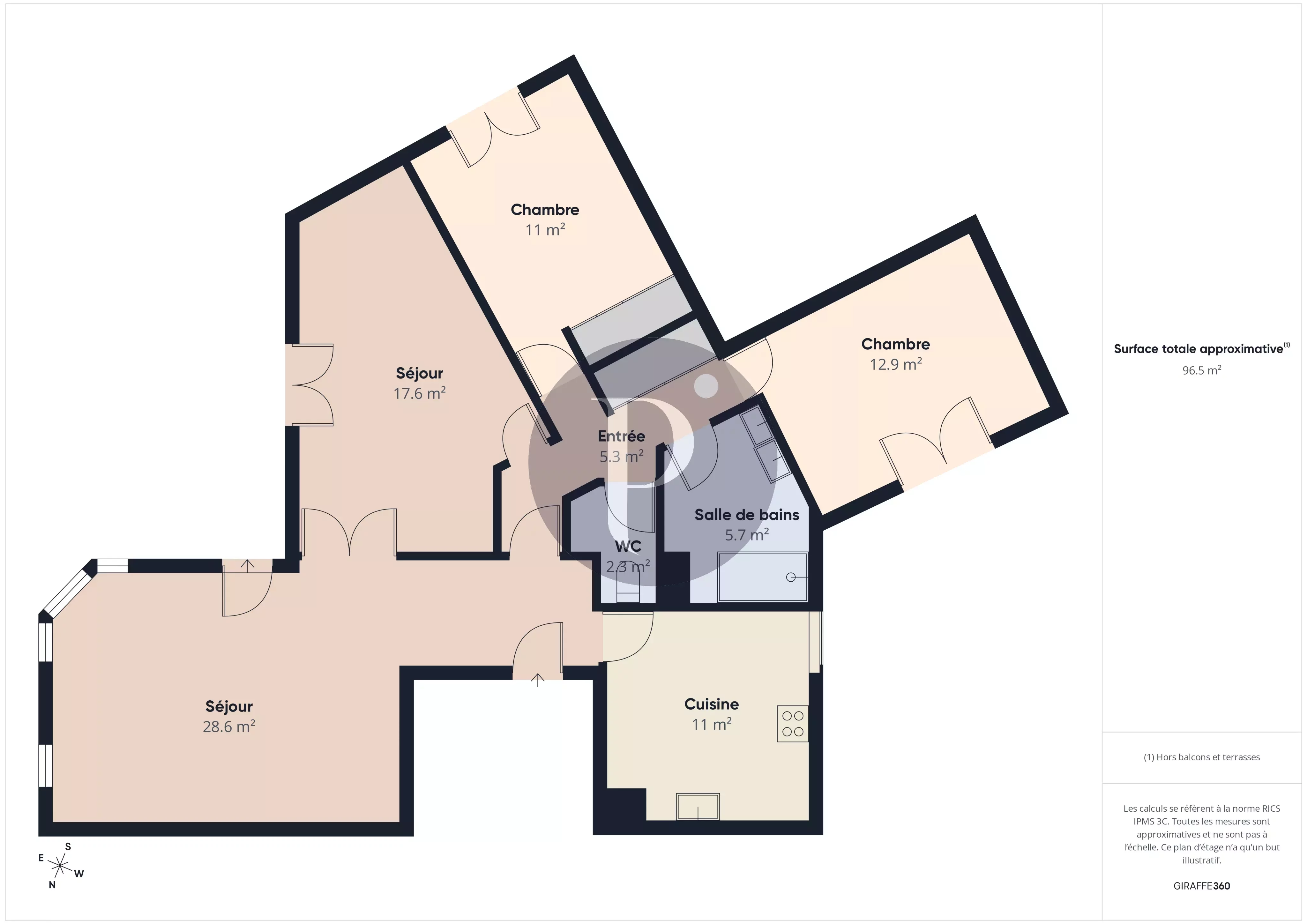 Appartement 96 m² Verrières hyper centre